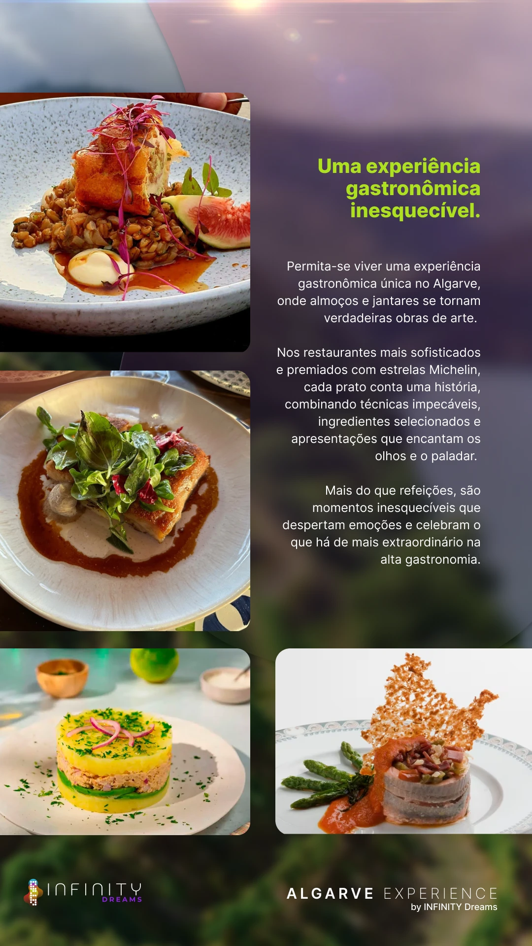 Muito mais que uma viagem, você desfrutará de experiências surreais, com requinte de exclusividade premium. Um destino onde a beleza natural, a emoção e a gastronomia se encontram.