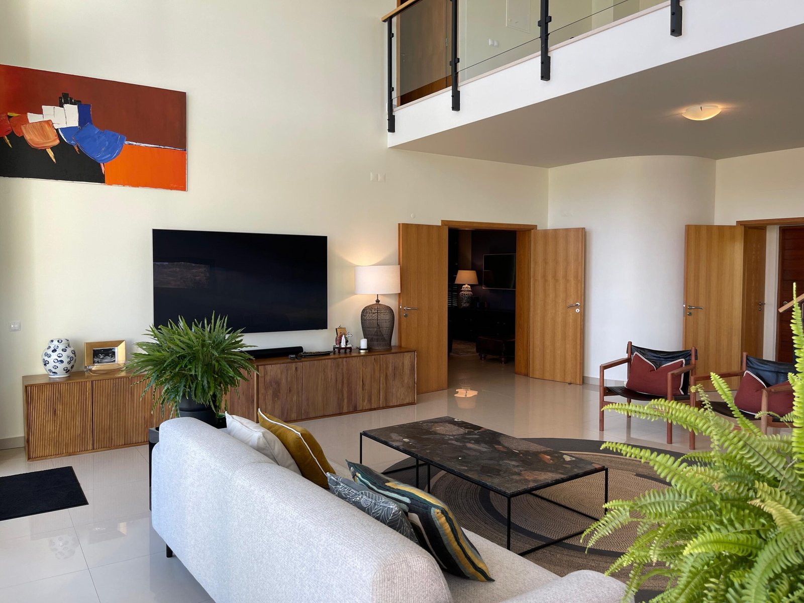 No piso superior, a moradia eleva ainda mais o seu charme, oferecendo uma magnífica mezzanine, ideal para uma zona de estar elegante ou espaço de leitura.