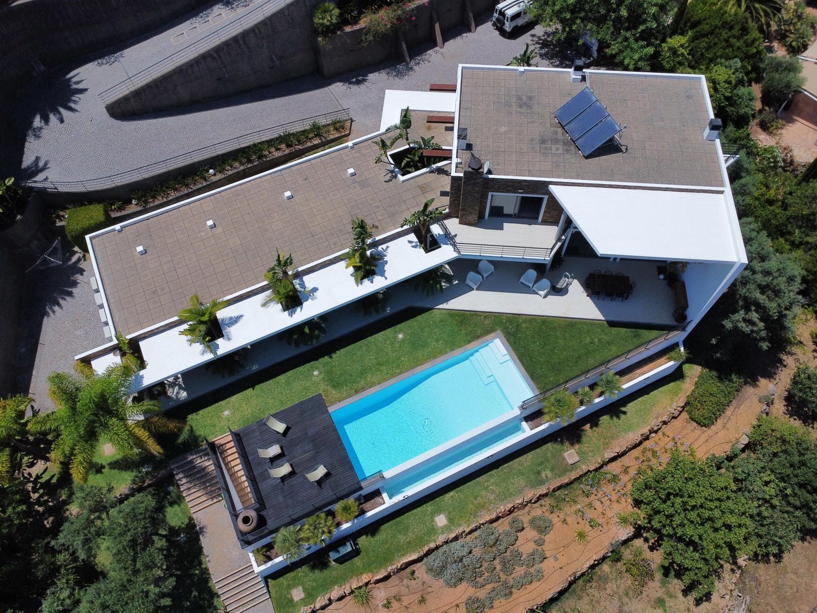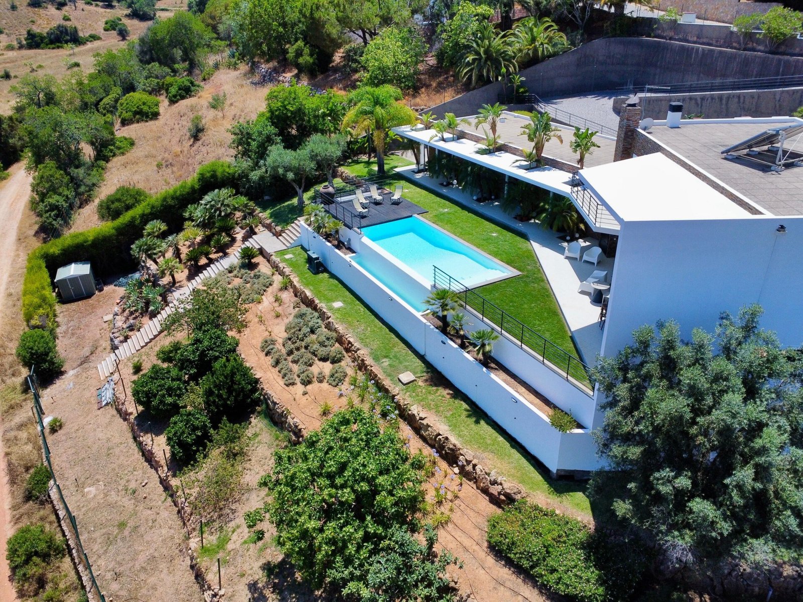 A zona exterior é um verdadeiro convite ao lazer e ao bem-estar. O jardim paisagístico envolve a propriedade com uma sensação de tranquilidade absoluta, proporcionando um cenário perfeito para desfrutar do clima ameno e ensolarado do Algarve.