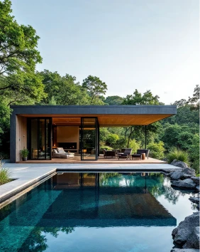 A propriedade equilibra perfeitamente o luxo moderno com a seriedade da natureza, envolvendo-se num ambiente acolhedor e caseiro.